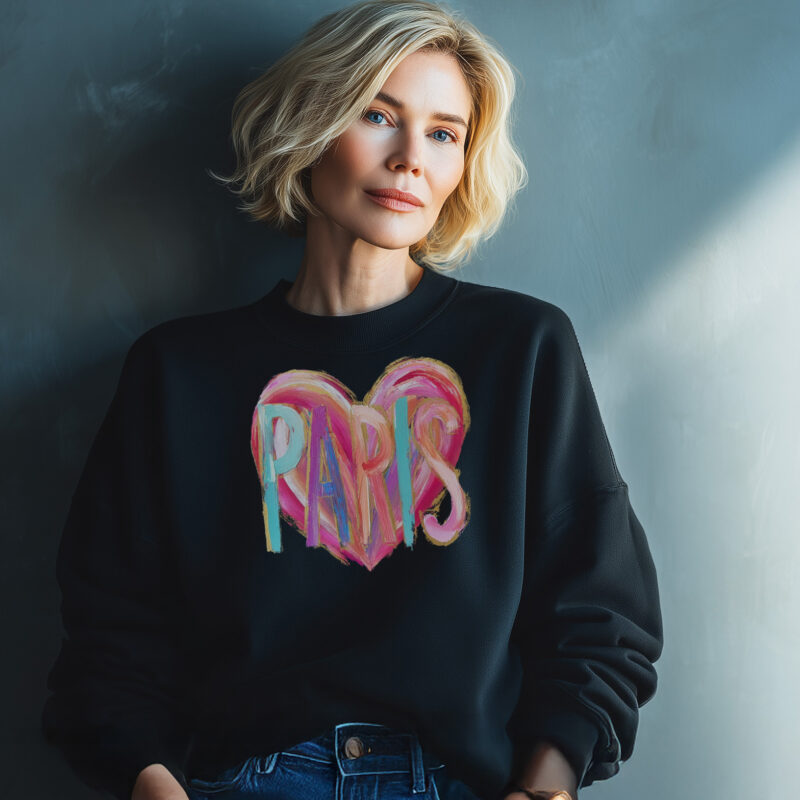 39,95 €Black Paris Sweatshirt with Colorful Heart – Perfect Valentine Gift