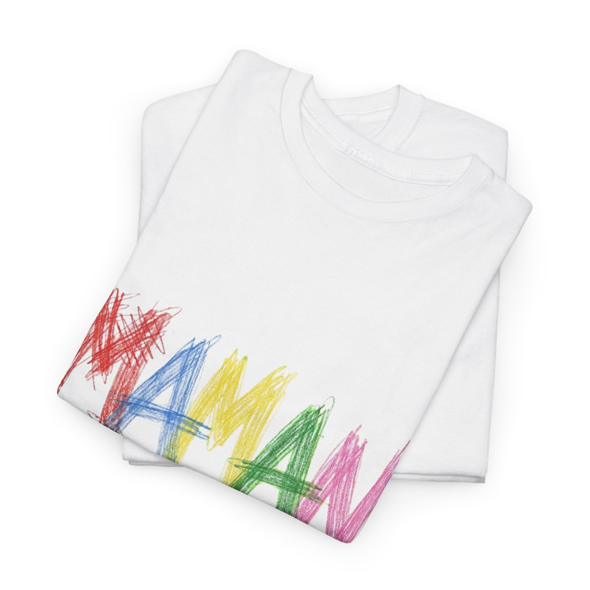 This women’s white t‑shirt is created with heartfelt inspiration from childhood charm. The word “Maman” is shown in a playful, multicolor, scribbled text that appears lovingly drawn by a little hand. A Parisian spirit is conveyed through a minimalist yet emotional design that warms every mother’s heart. Mothers, daughters, and gift‑seekers find a connection in this adorable French expression of love.