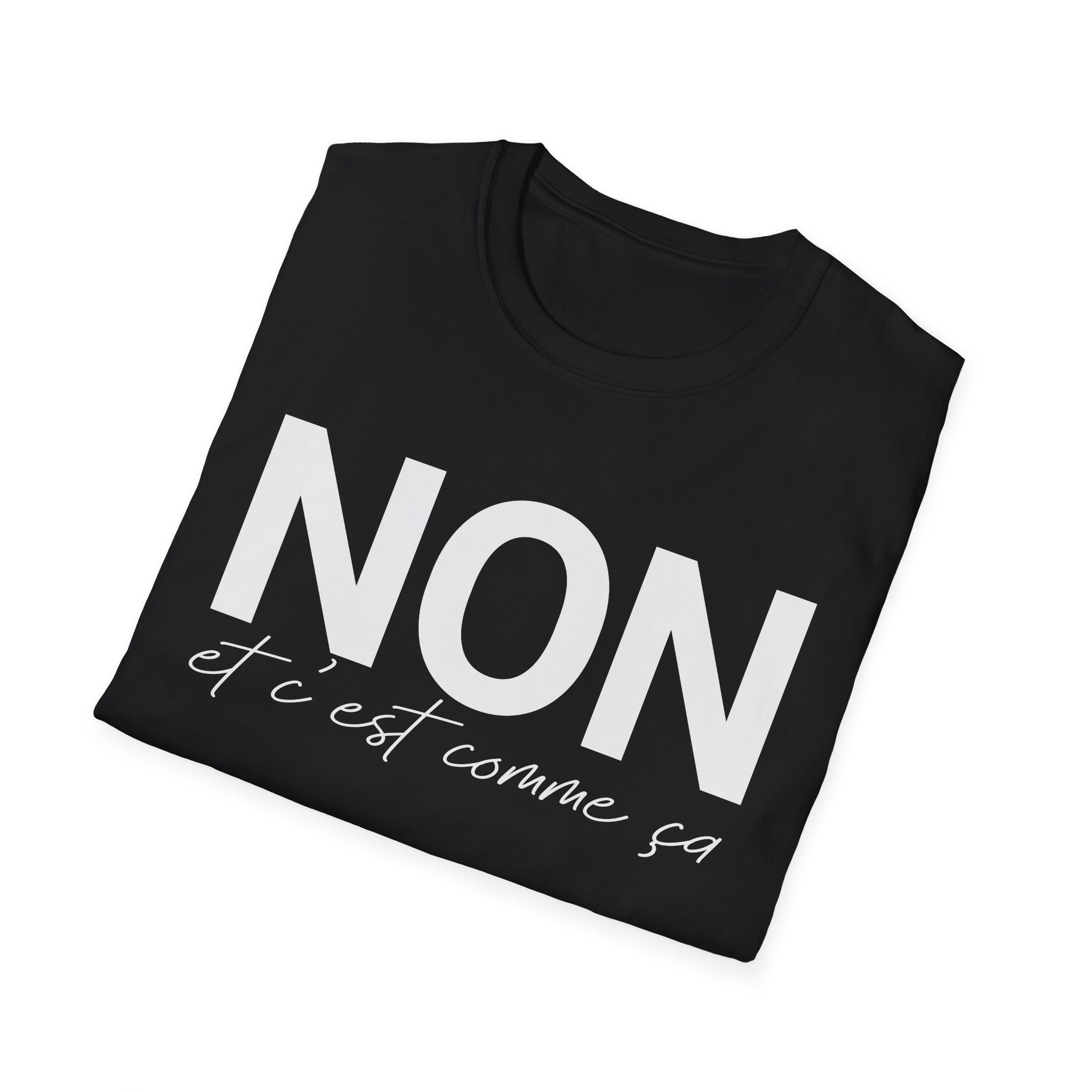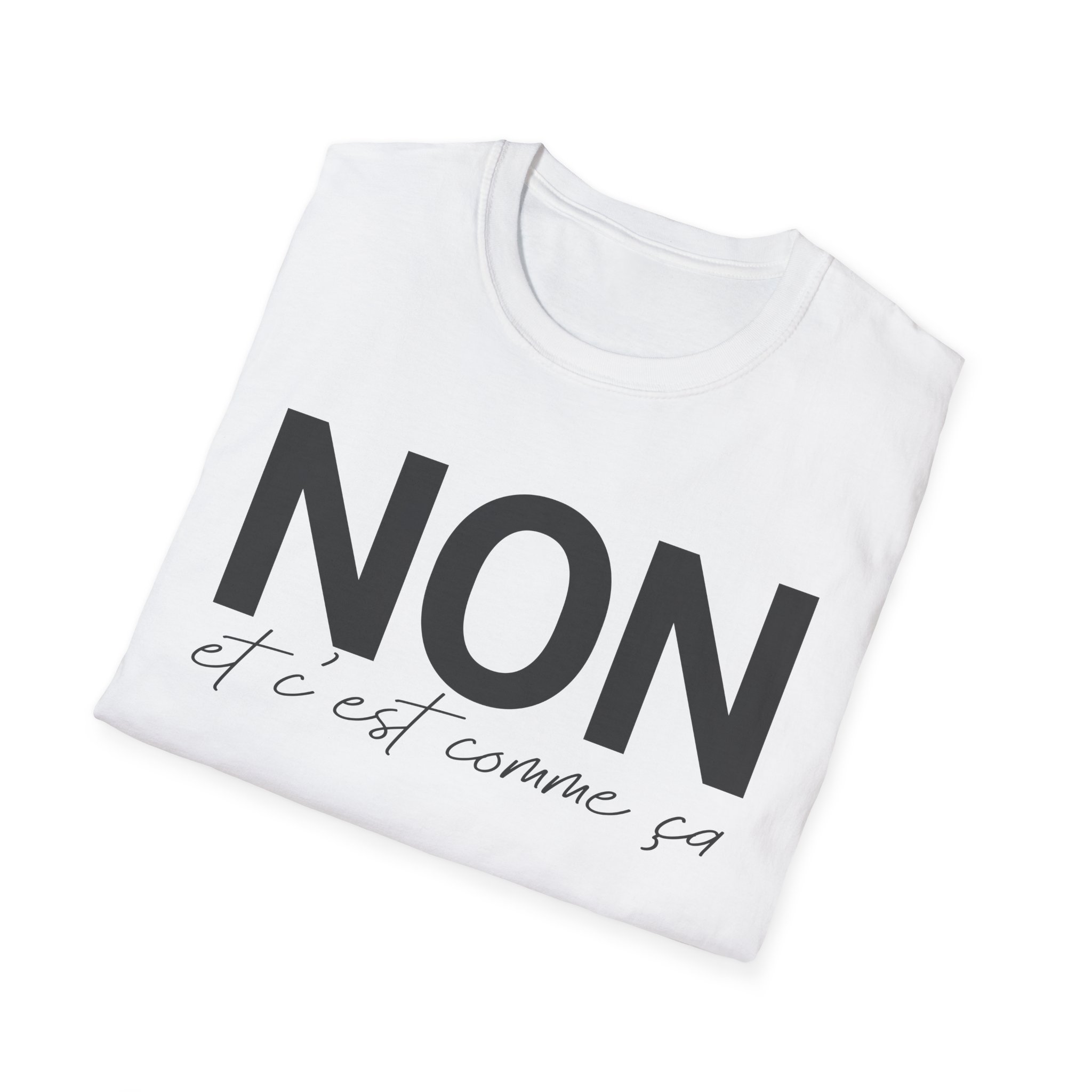 A bold women’s French shirt with the text “Non Et C’est Comme Ça.” A confident Paris shirt for Francophiles and Paris lovers.